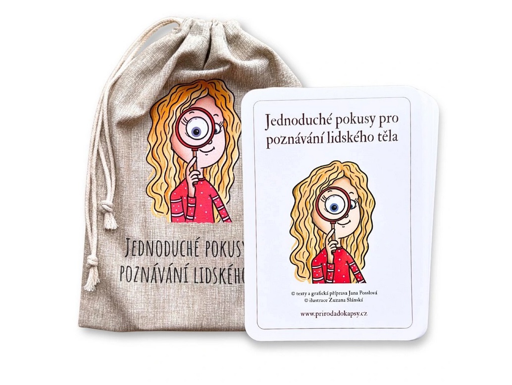 Jednoduché domácí pokusy pro poznávání lidského těla jsou souborem 20 pokusů, které vás provedou zajímavými funkcemi našeho těla. Nepotřebujete žádné speciální znalosti, v kartách najdete seznam pomůcek, detailní postup i vědecké vysvětlení. Pomůcky pro většinu pokusů máte pravděpodobně doma (jsou to různé věci z kuchyně nebo k dětskému tvoření - např. koření, trychtýř, ocet, sklenice, nůžky, karton apod. ). U některých pokusů se používají také nafukovací balonky nebo brčka a pár dalších pomůcek, které běžně koupíte v každé větším obchodě.