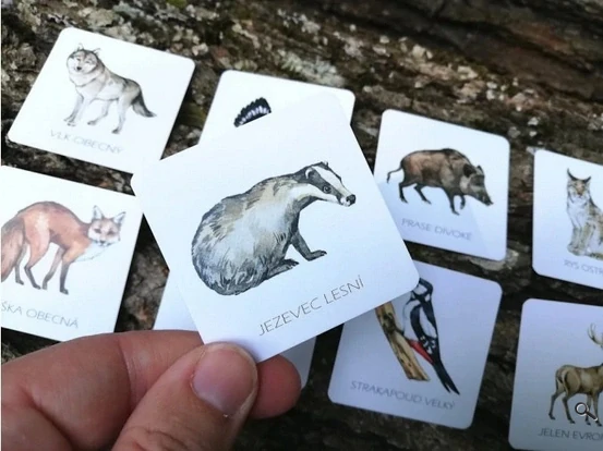 Pexeso s nádhernými ručními kresbami našich lesních zvířat. V pexesu najdete nejen vlka, medvěda a lišku, ale také např. hranostaje nebo jezevce.